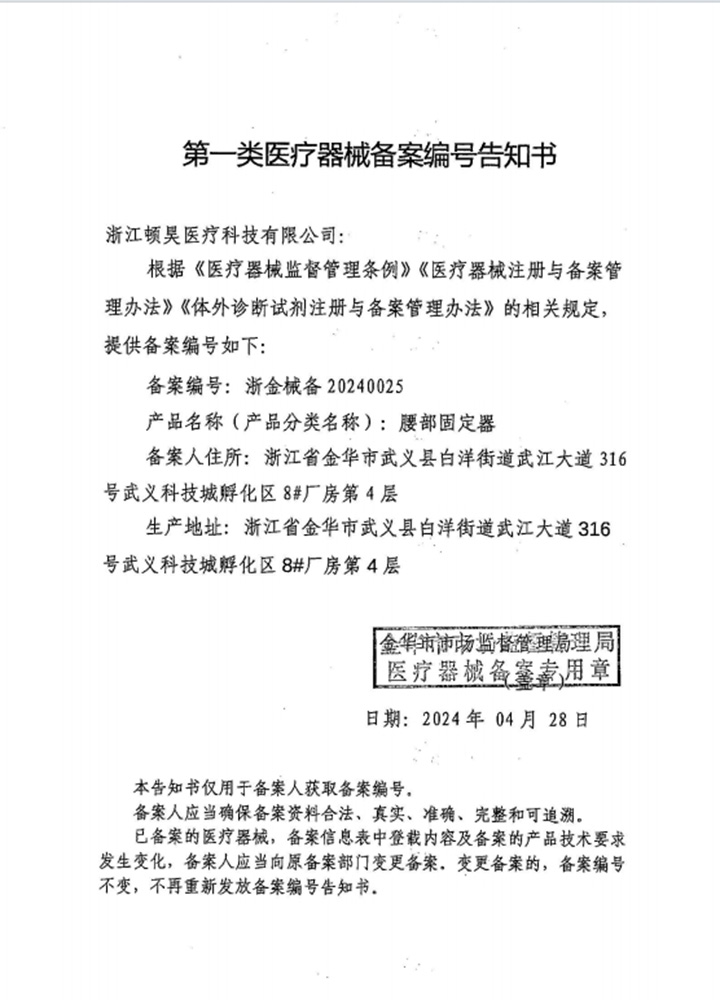 浙江頓昊醫療有限公司位于浙江溫泉之都——武義,是生產頸椎儀等醫療科技用品的專業廠家,其中現在生產的腰、頸椎儀成為國際國內眾多客戶首選產品。在經營中公司實行嚴格的質量管理,為使各類產品領先國內外市場 ,公司擁有先進設備及工藝;技術力量雄厚;檢測設備齊全;質保體系完善。產品出口世界各國,深受國內外客戶歡迎。 企業以質量第一,信譽至上為經營原則。以務實創新高效向上的企業精神,在企業發展的同時,竭誠希望與海內外客戶建立合作伙伴關系,共創繁榮!